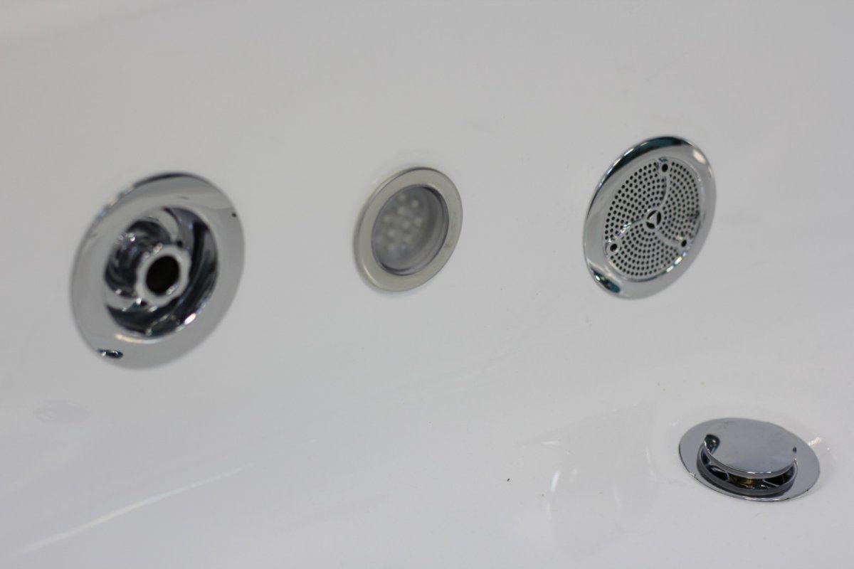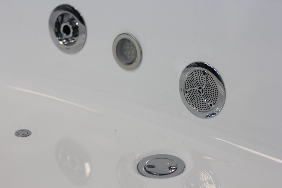 Также пульт позволяет регулировать мощность подачи воды гидромассажной струи и менять пропорцию воздуха. Пульт чаше всего используется при установке дополнительных опций (МР3, радио, хромотерапия). Стоит обратить внимание, что пневмо-кнопки управления уже входят в стоимость гидромассажной системы, а электропульт – это управление, которое предлагается как дополнительная платная опция.