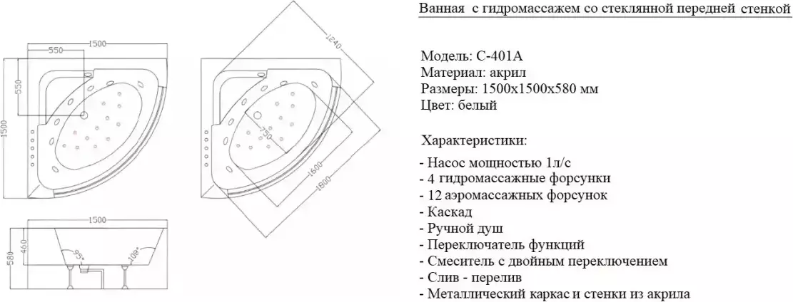 - Материал ванны высококачественный акрил.