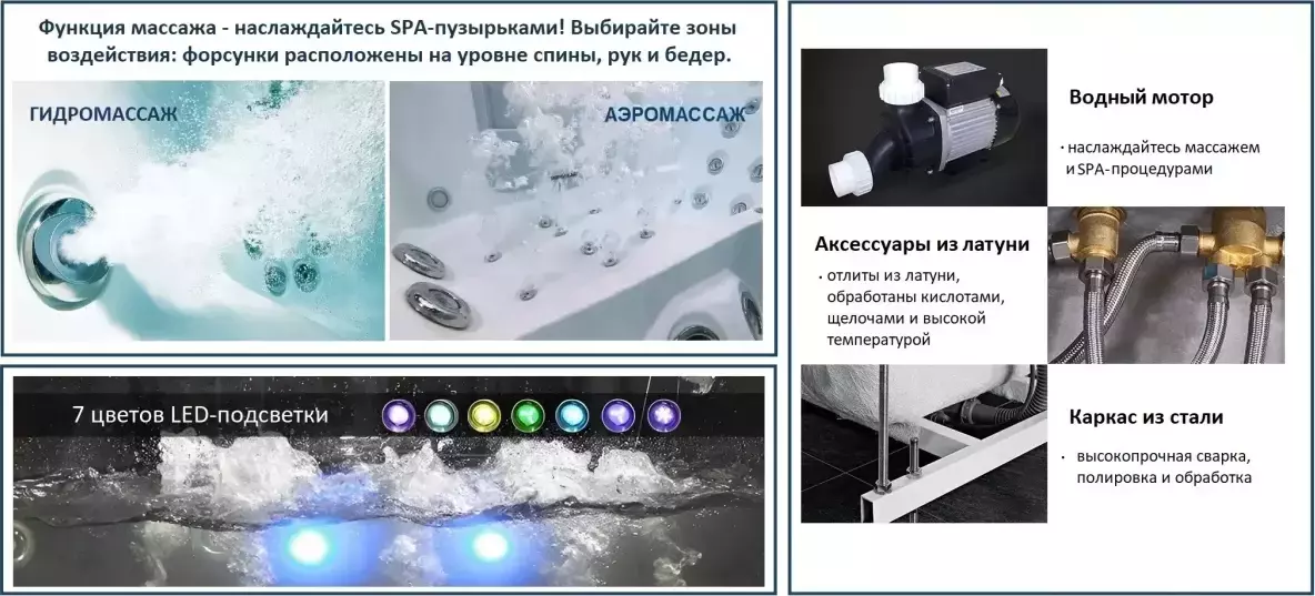 - Насладитесь расслабляющим аэромассажем и мощными струями гидромассажа у себя дома.