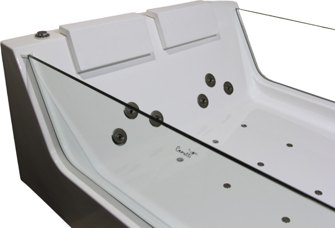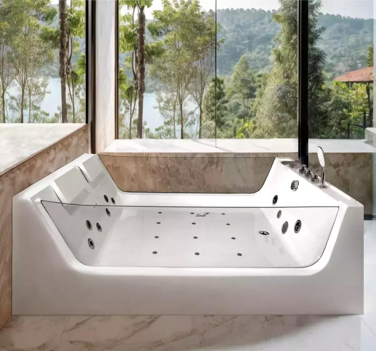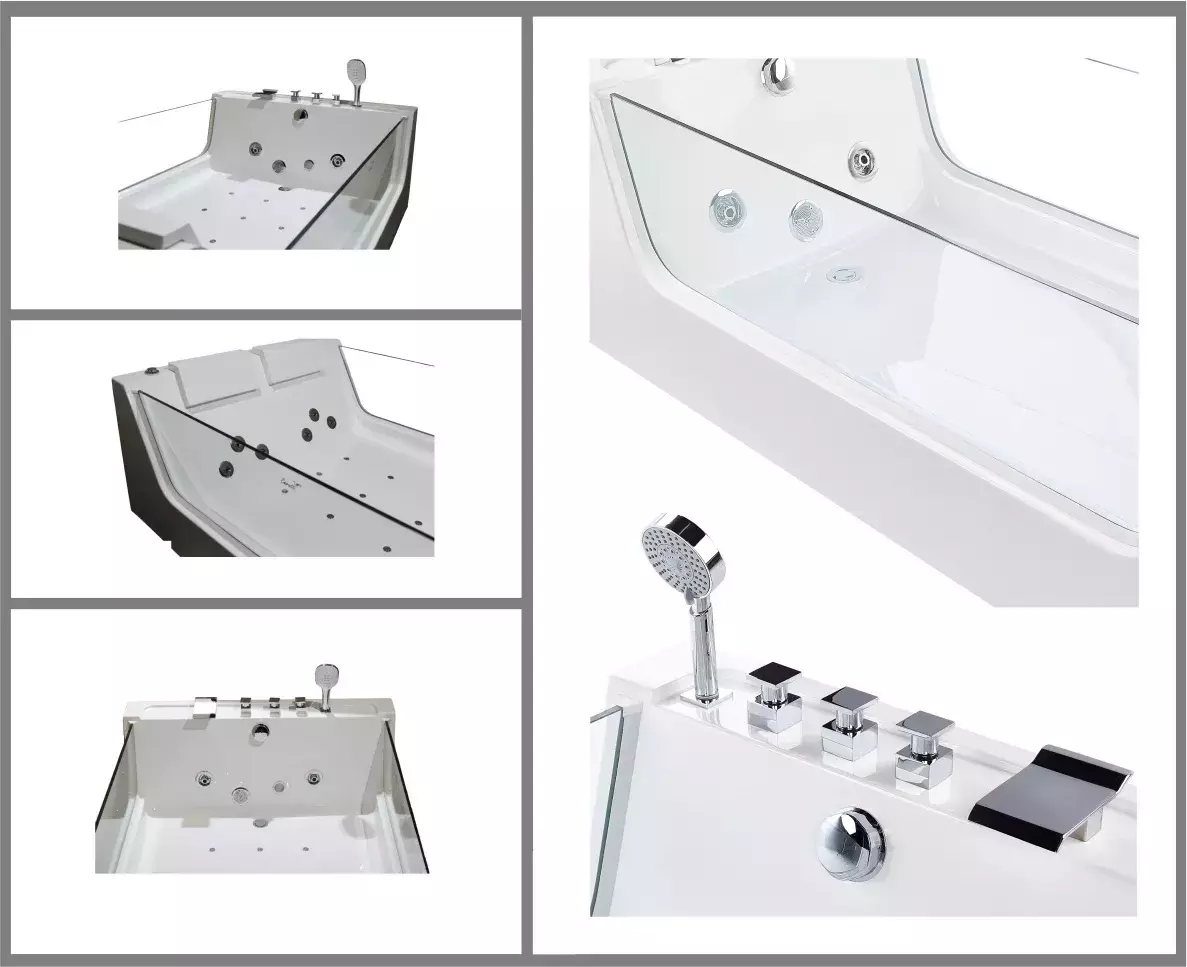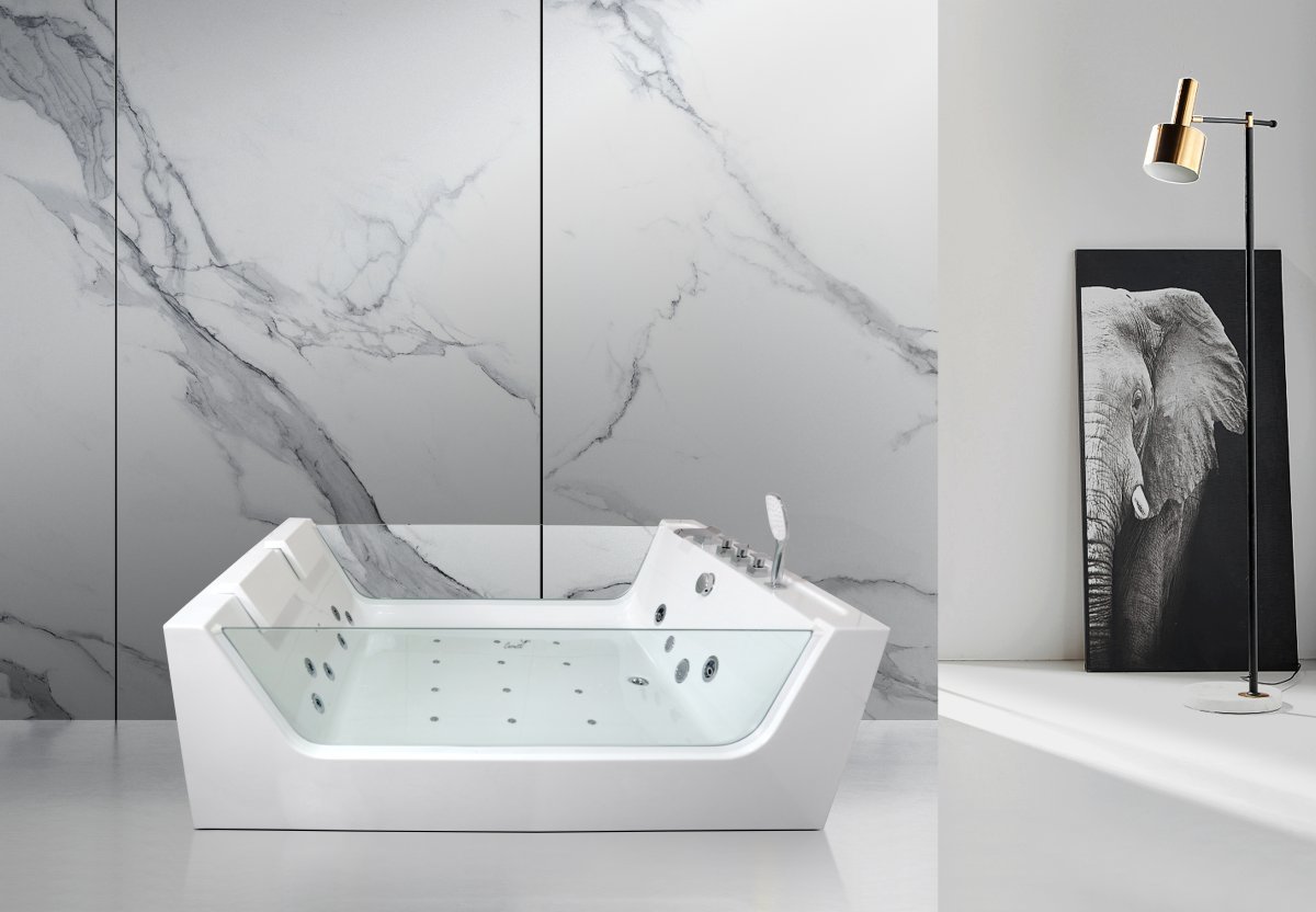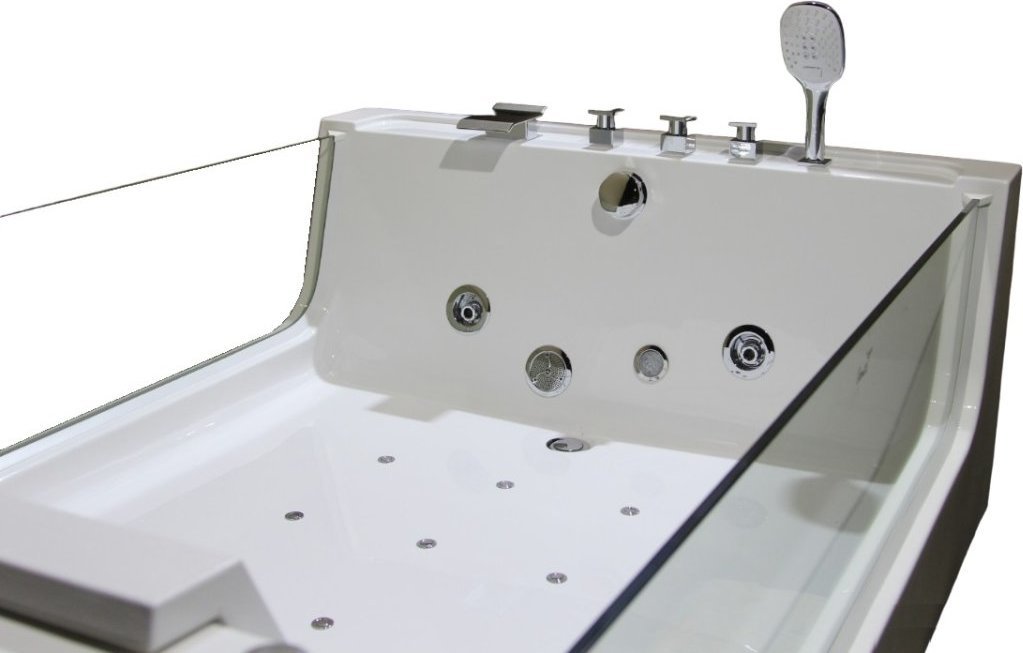 - Большая гидромассажная ванна. Выглядит солидно и современно. Два прозрачных экрана подчеркнут красоту Вашей ванной комнаты.
