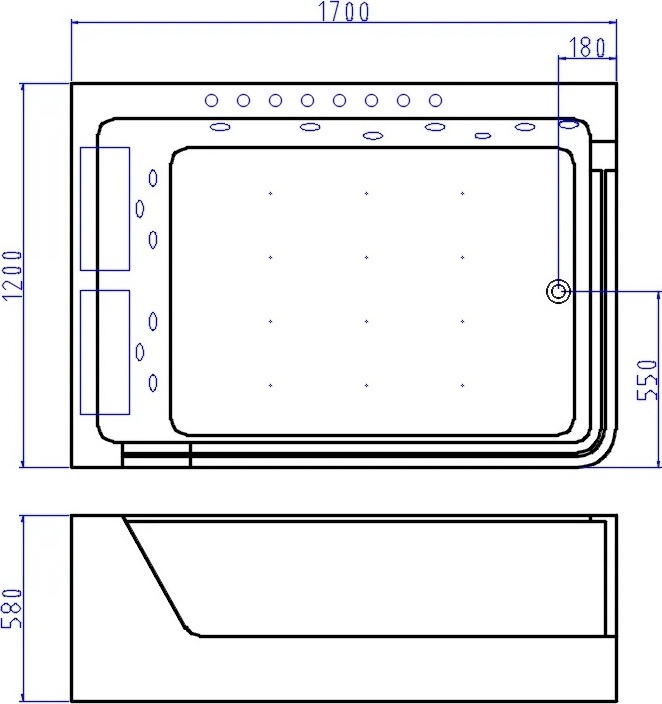 - Пневмокнопка не только включает гидро и аэро массаж, подсветку, но и озонирование.