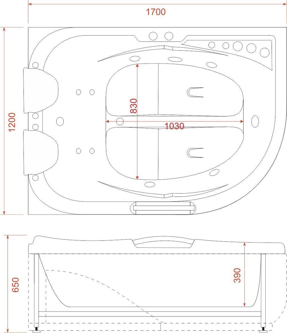 Ванна гидромассажная EvaGold 170x120 см L OLB-807