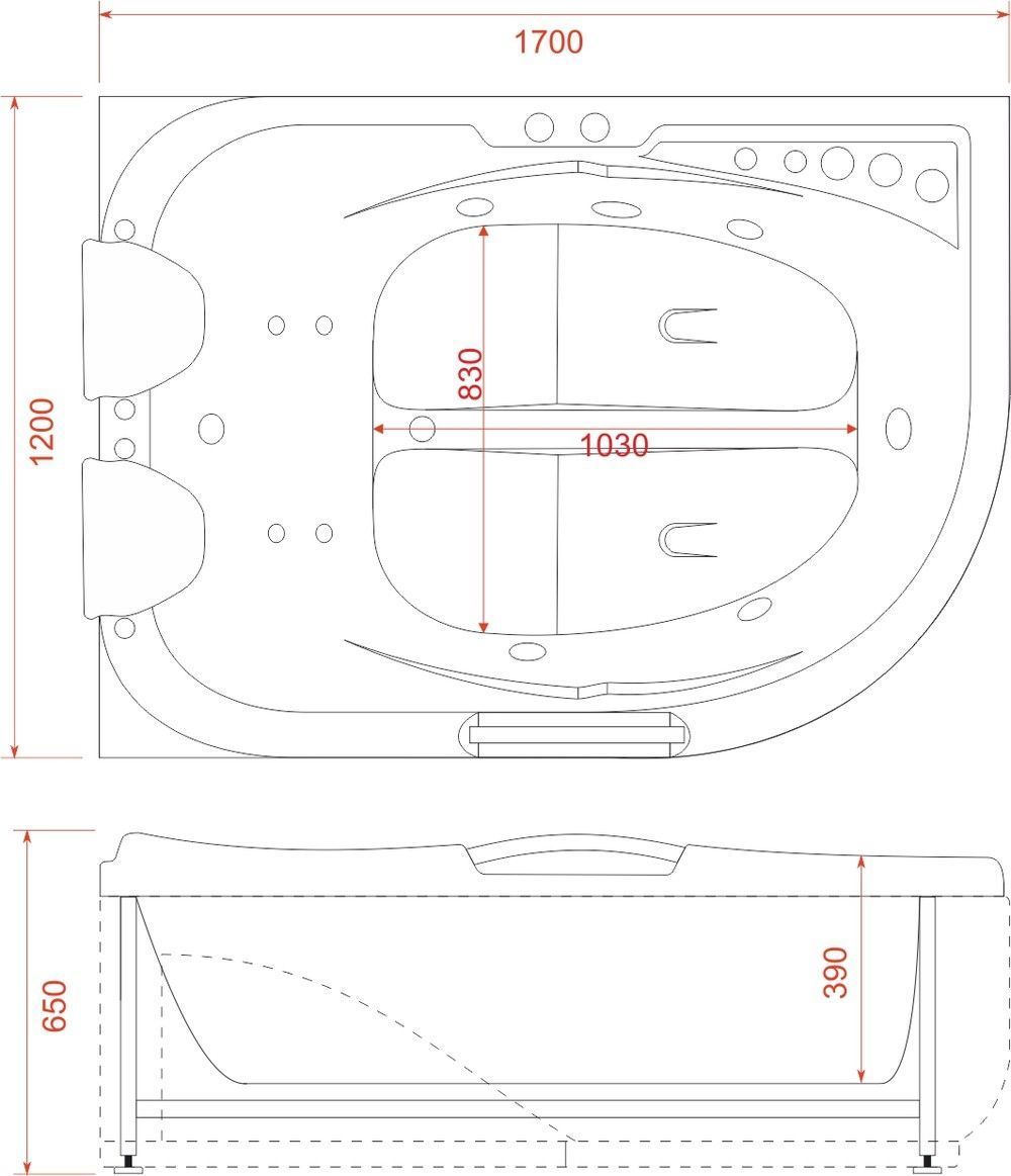 Ванна гидромассажная EvaGold 170x120 см R OLB-807