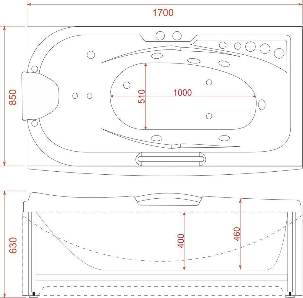 Ванна гидромассажная EvaGold 170x85 см OLB-801