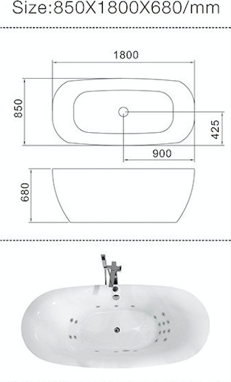 - Высота ванны: 680 mm