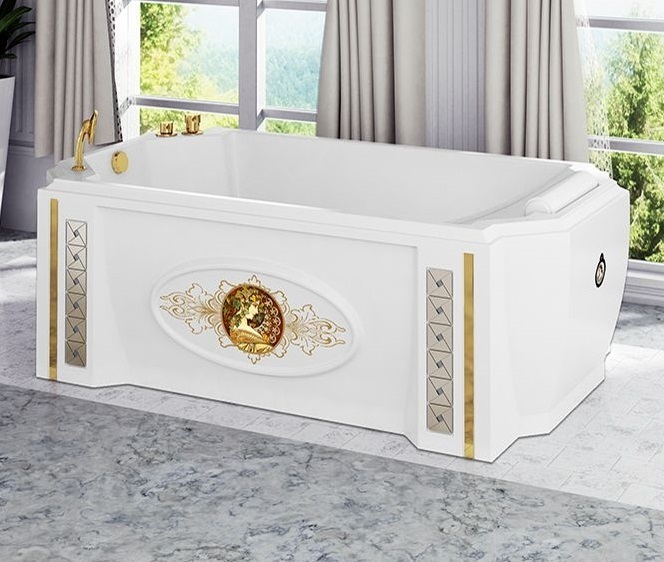 Тема классики подчеркнута также с помощью оригинальных дизайнерских решений. Фронтальная панель может быть украшена эксклюзивными деталями отделки - вертикальной вставкой "Арт-мозаика" и эмблемой в виде картин великих художников, которые делают ванну по-настоящему уникальной. Возможности производства позволяют нанести в качестве декоративной эмблемы любое изображение.