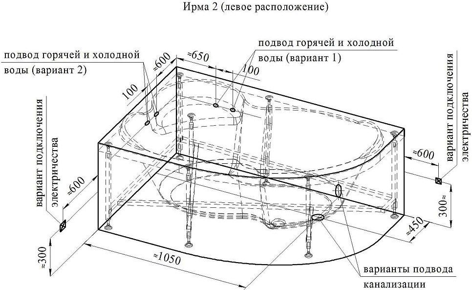 - Угловая форма ванны Ирма экономично использует пространство ванной комнаты