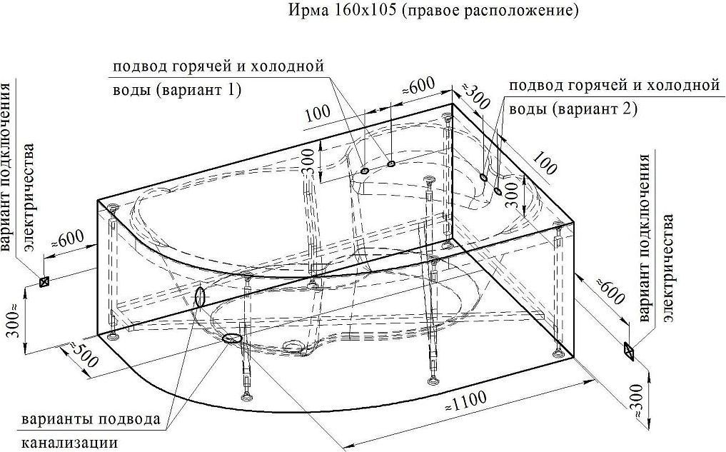 Ванна гидромассажная Радомир Ирма 160x105 см R (Гидромассаж "Стандарт" Bronze)