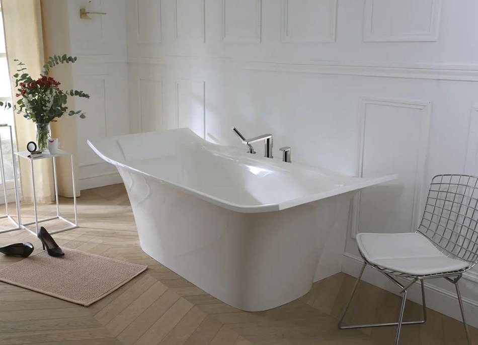 Ванна каменная Jacob Delafon Grand Boulevard 180x90 см E6D158-0 из искусственного камня, с сифоном, цвет - белый.