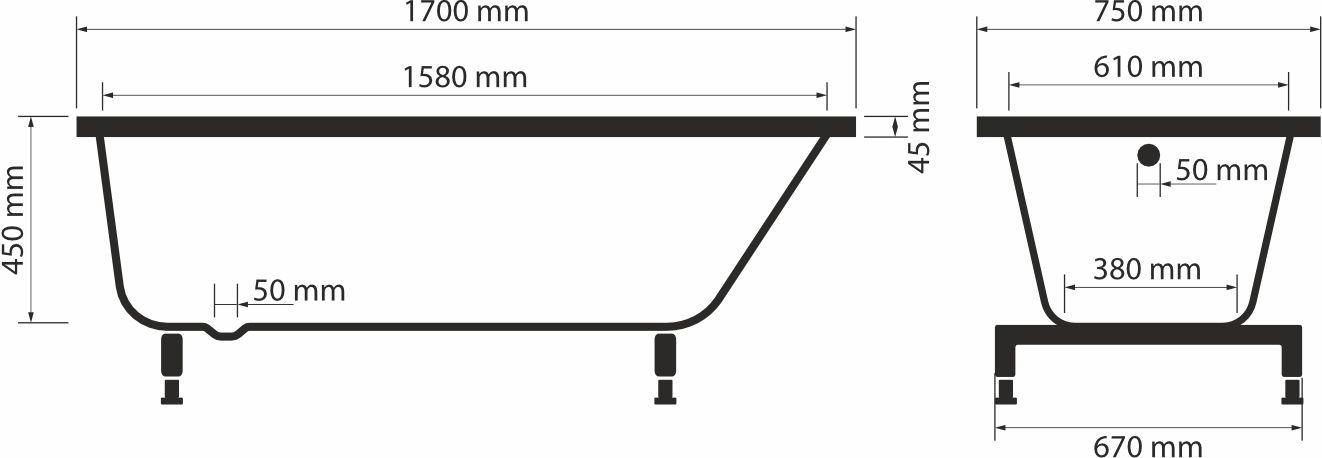 Ванна каменная Sole Epsilon ТМ с ножками, размер 170x75 см, цвет белый.