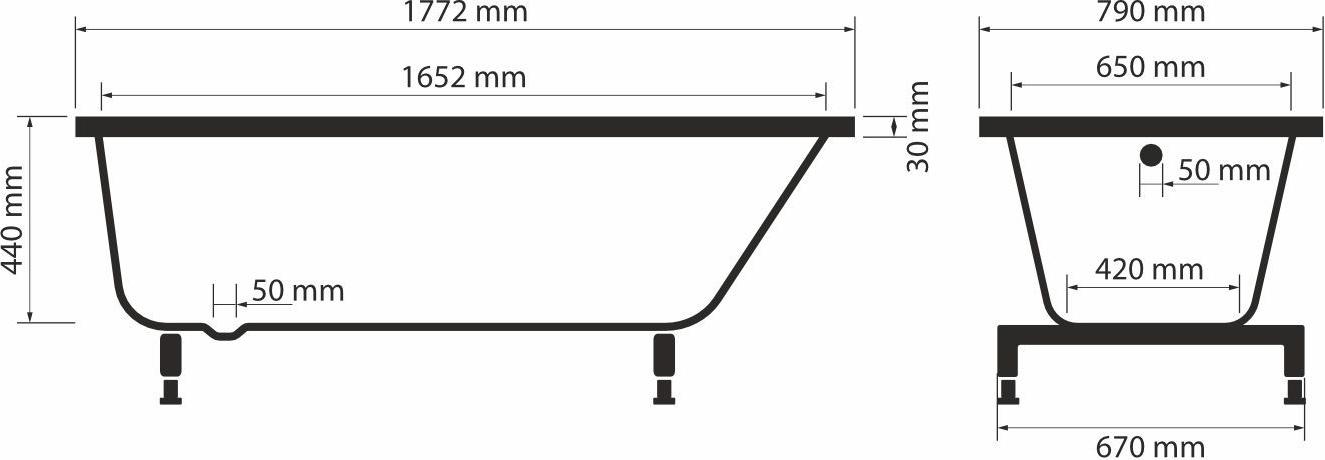 Ванна каменная Sole Epsilon ТМ с ножками, размер 180x80 см, цвет белый.