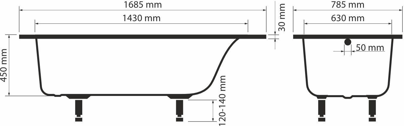 Ванна каменная Sole Gamma ТМ с ножками, размер 170x80 см, цвет белый.
