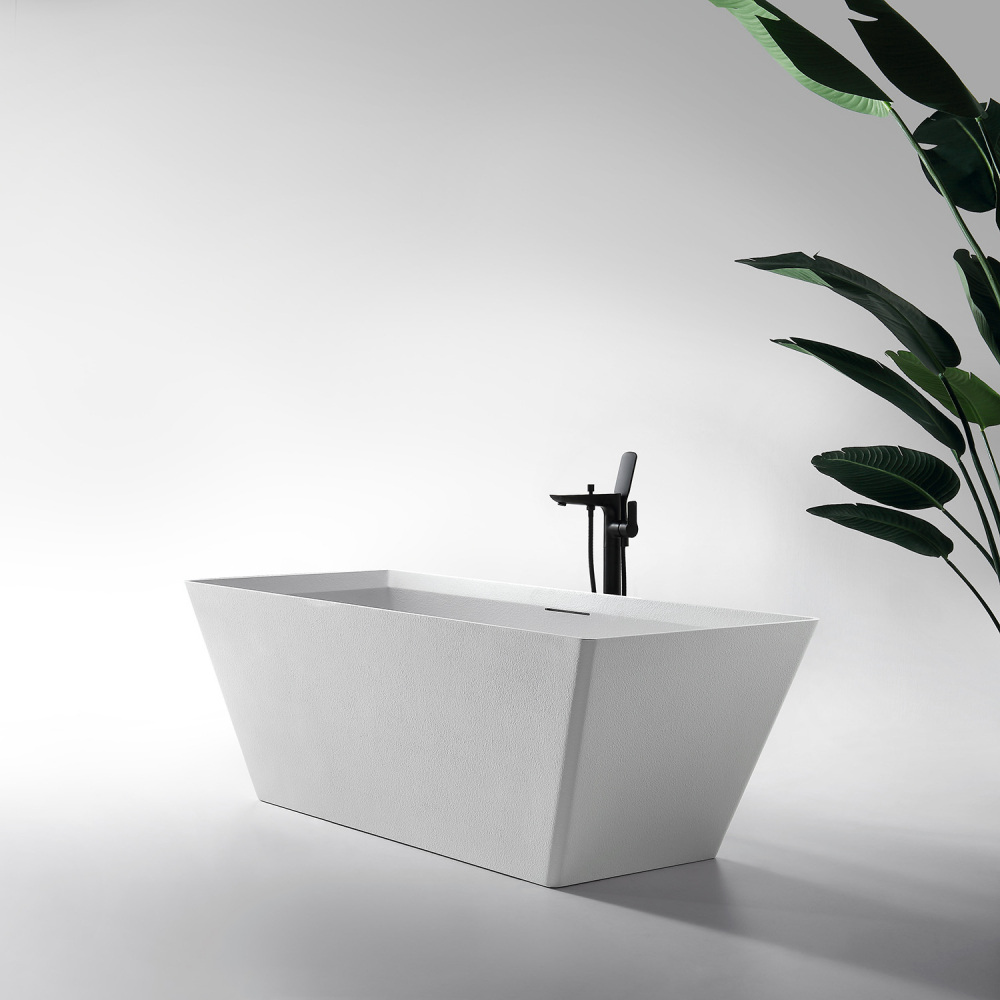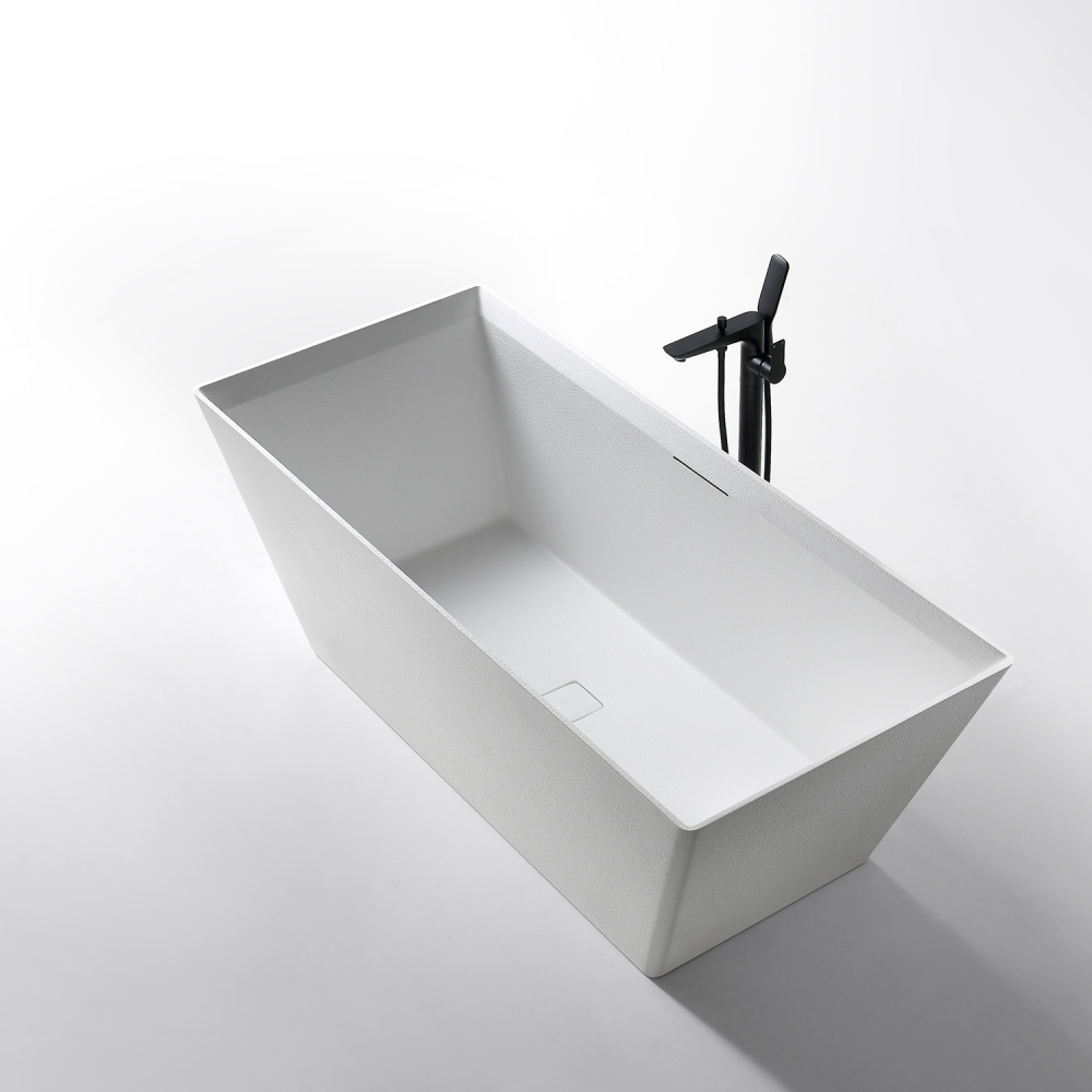 Ванна отдельностоящая Abber Berlin 170x75 см AM9912 из искусственного камня, слив-перелив в комплекте, цвет - белый.