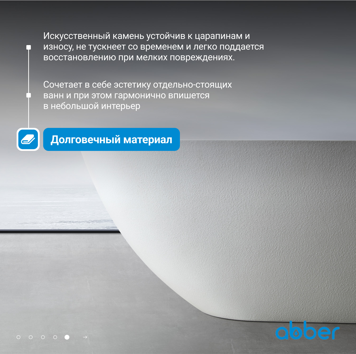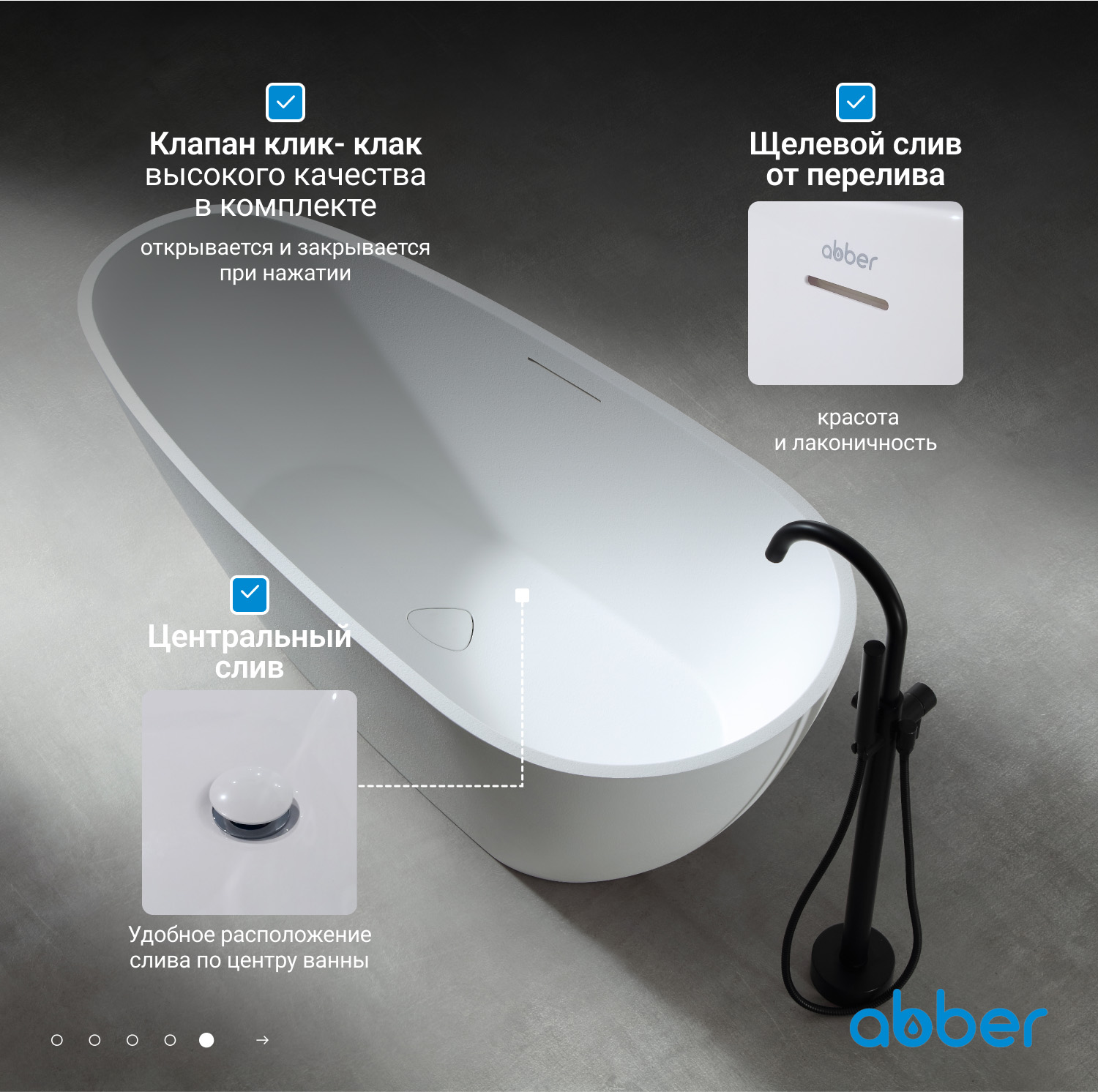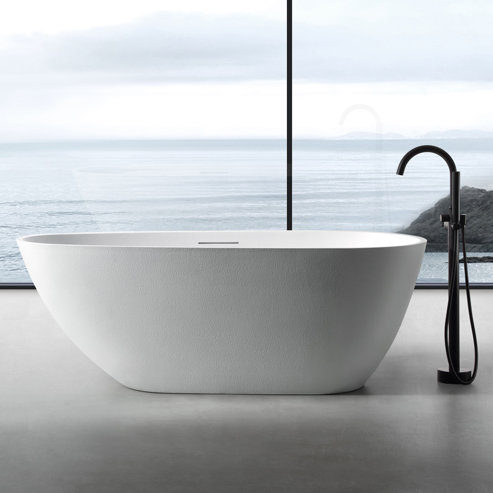 Ванна отдельностоящая Abber Dortmund 170x75 см AM9911 из искусственного камня, слив-перелив в комплекте, цвет - белый.