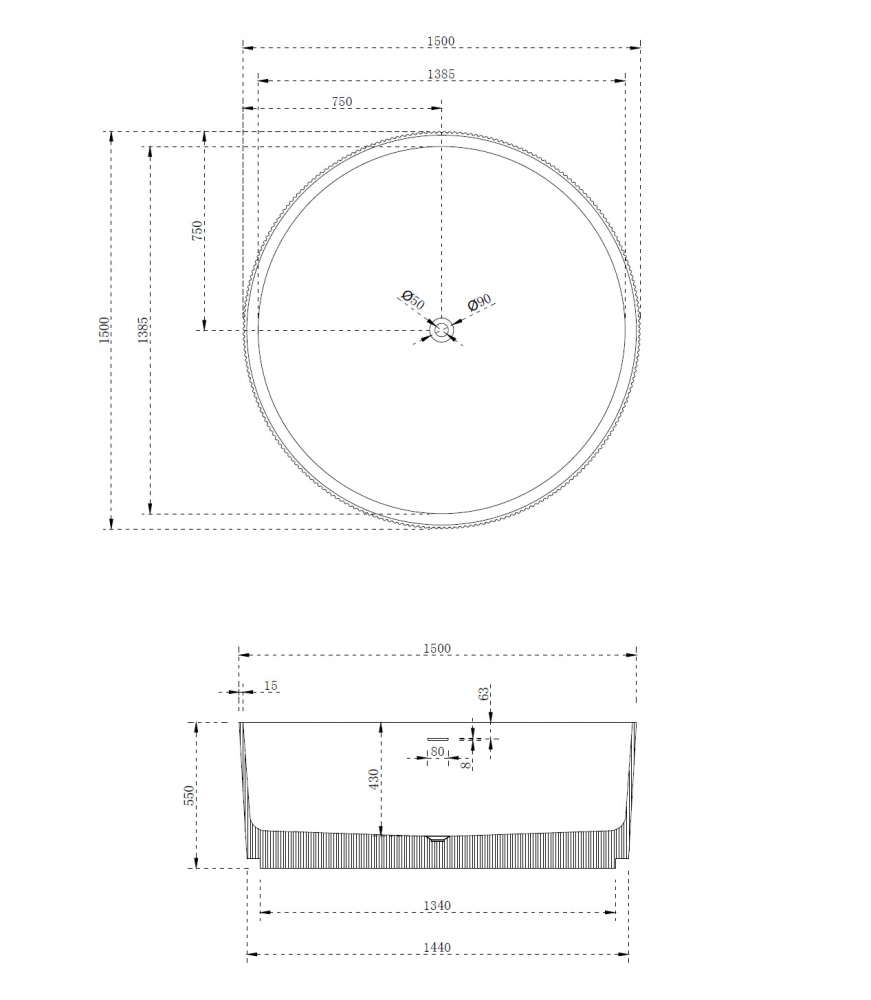 Ванна отдельностоящая Abber Stein 150x150 см AS9679Blau, голубой