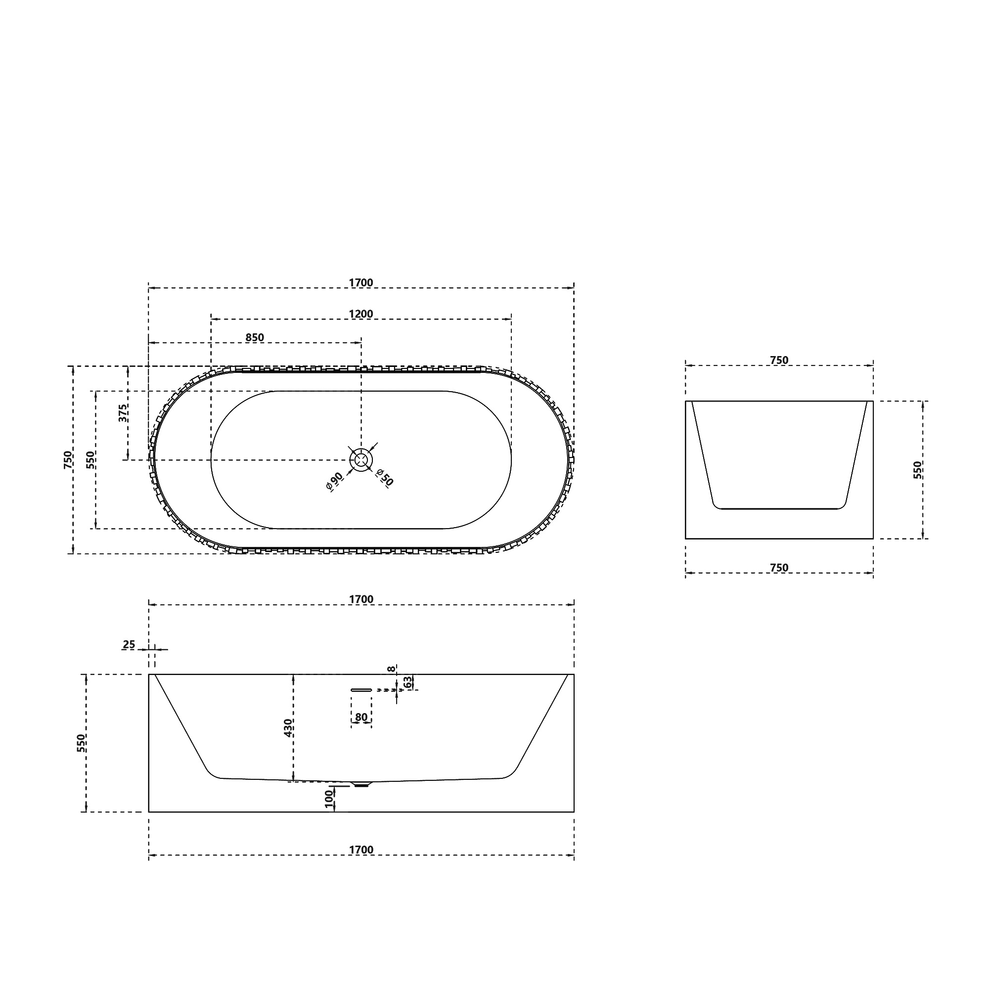 Ванна отдельностоящая Abber Stein 170x75 см AS9653, белый матовый