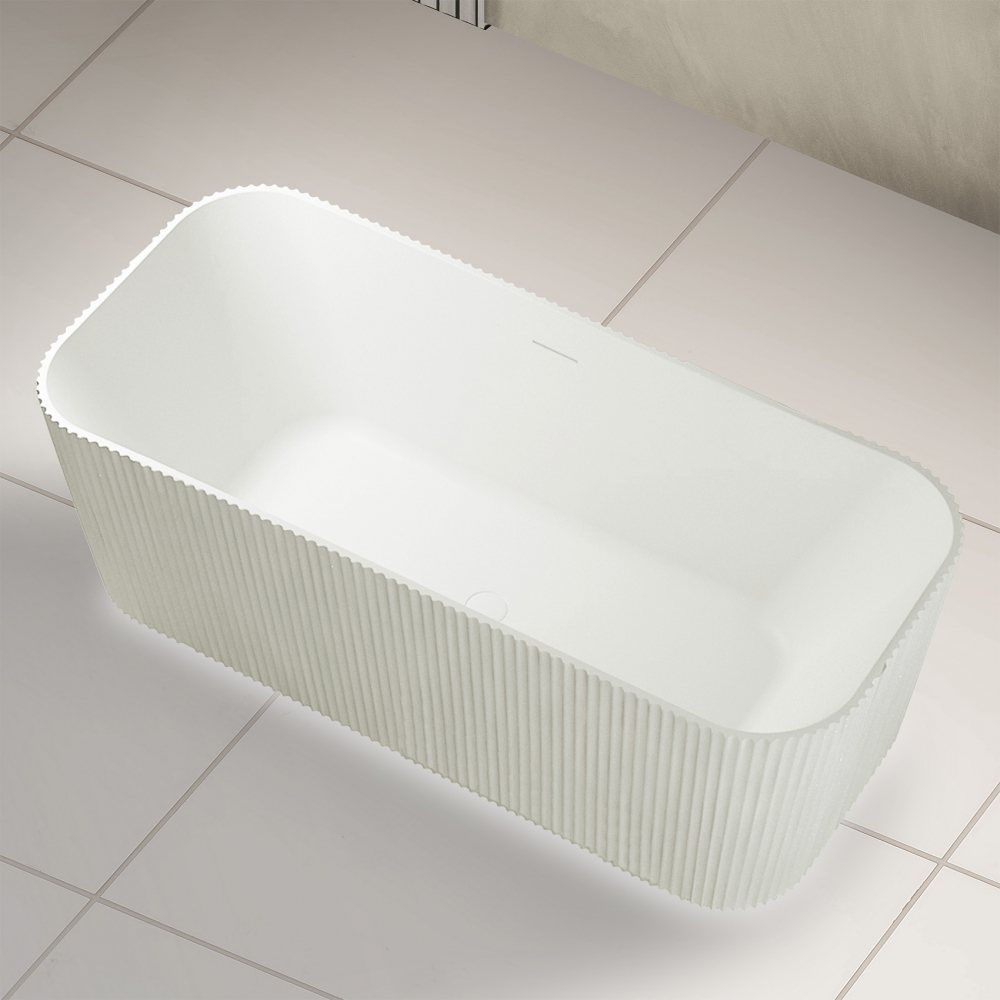 Ванна отдельностоящая Abber Stein 170x75 см AS9663 из искусственного камня, слив-перелив в комплекте, подсветка приобретается отдельно, цвет - белый.