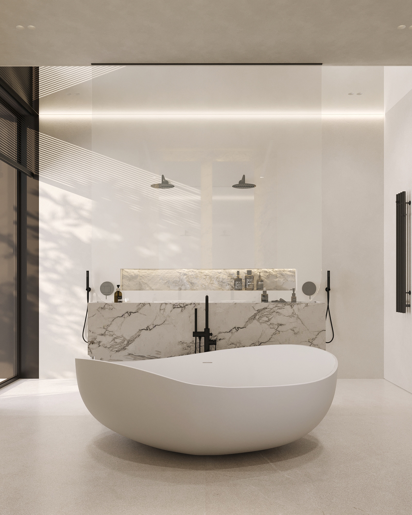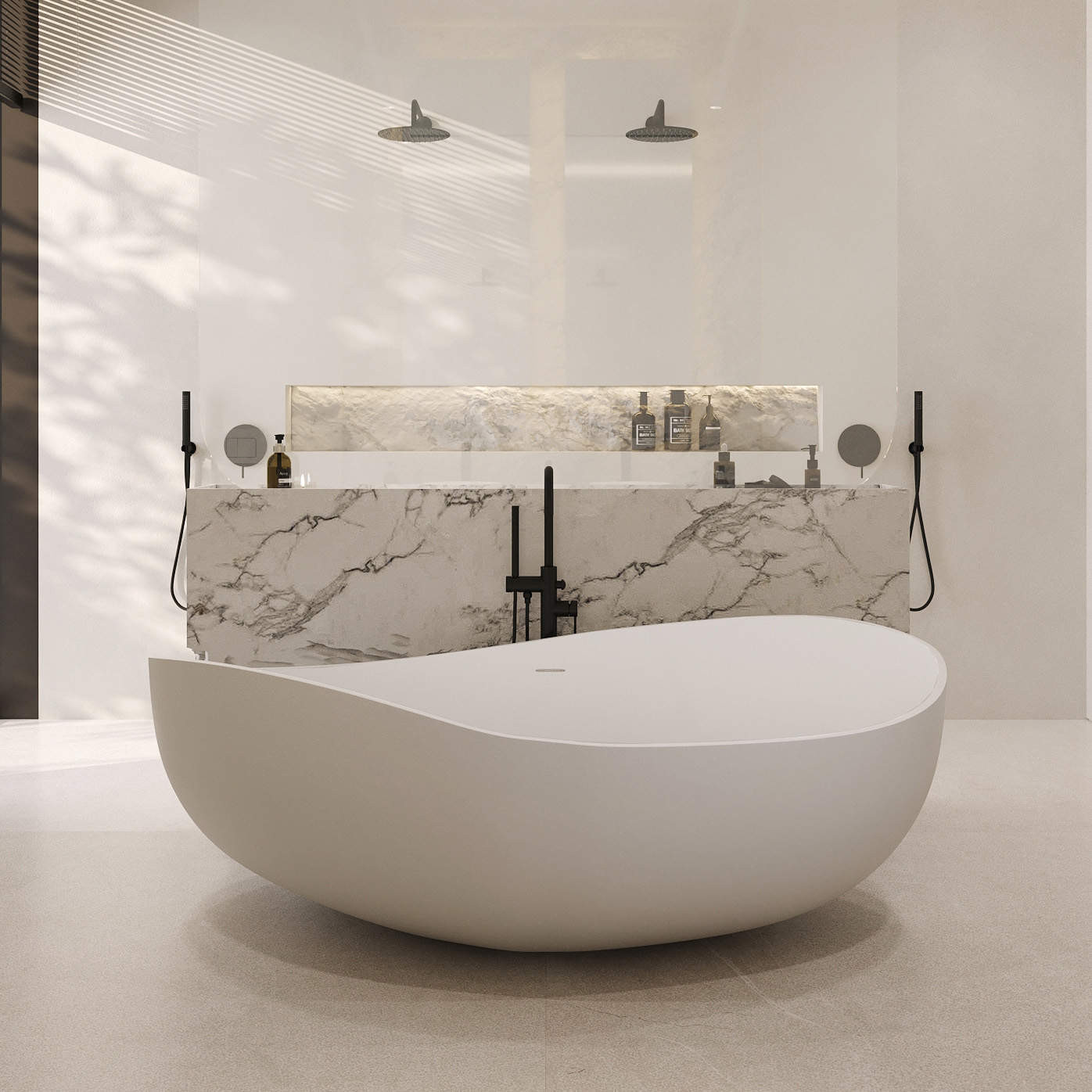 Ванна отдельностоящая Abber Stein 180x110 см AS9639 из искусственного камня, слив-перелив в комплекте, цвет - белый матовый.