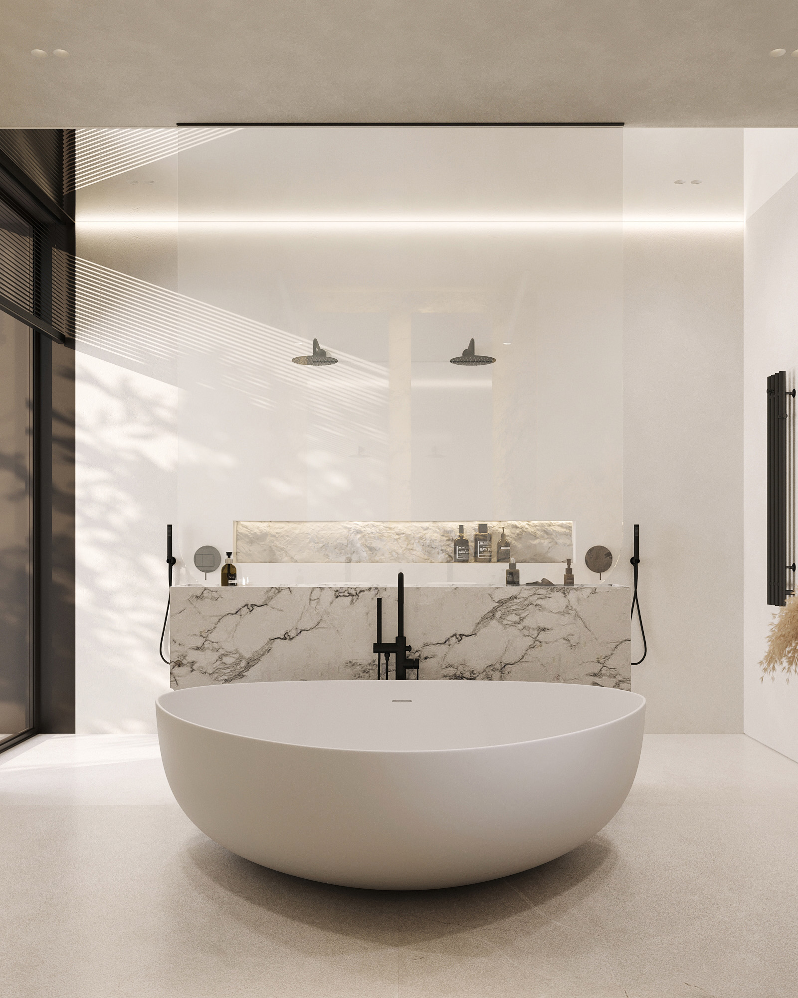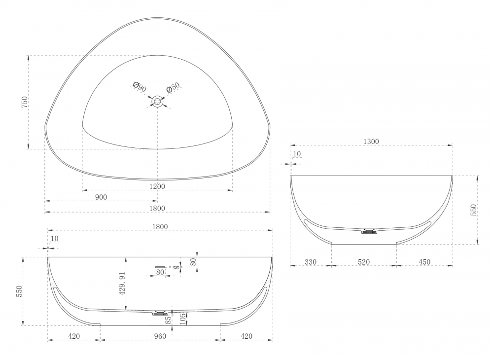 Ванна отдельностоящая Abber Stein 180x130 см AS9608 из искусственного камня, слив-перелив в комплекте, цвет - белый матовый.