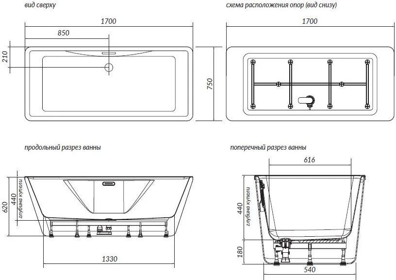 Ванна отдельностоящая Aima Icon со слив-переливом, размер 1700x750 см, цвет белый.