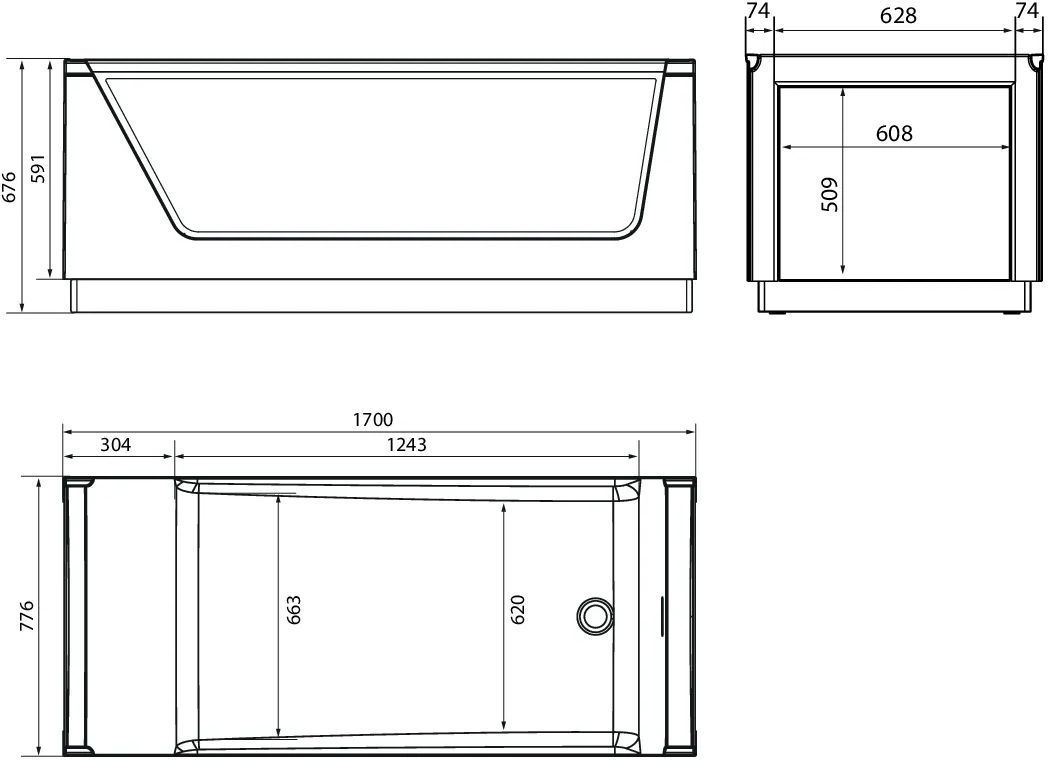 Ванна отдельностоящая Aima Neo со слив-переливом, размер 1700x776 см, цвет серый матовый.
