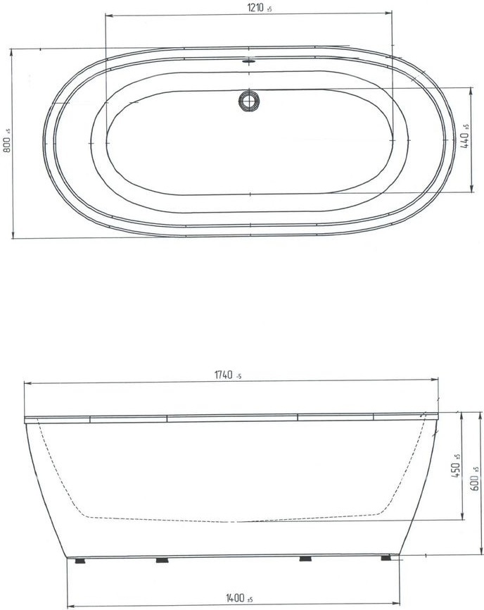 Ванна отдельностоящая Aima Tondo, размер 1740x800 см, цвет белый.