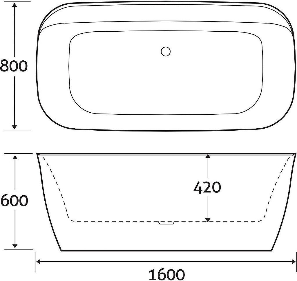Ванна отдельностоящая Art&Max 160x80 см AM-316-1600-800, сифон, донный клапан клик-клак, гидрозатвор и каркас в комплекте, цвет белый.