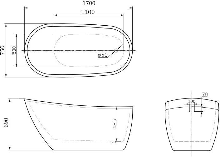 Характеристики ванна Art&Max (AM-205-1700-750)