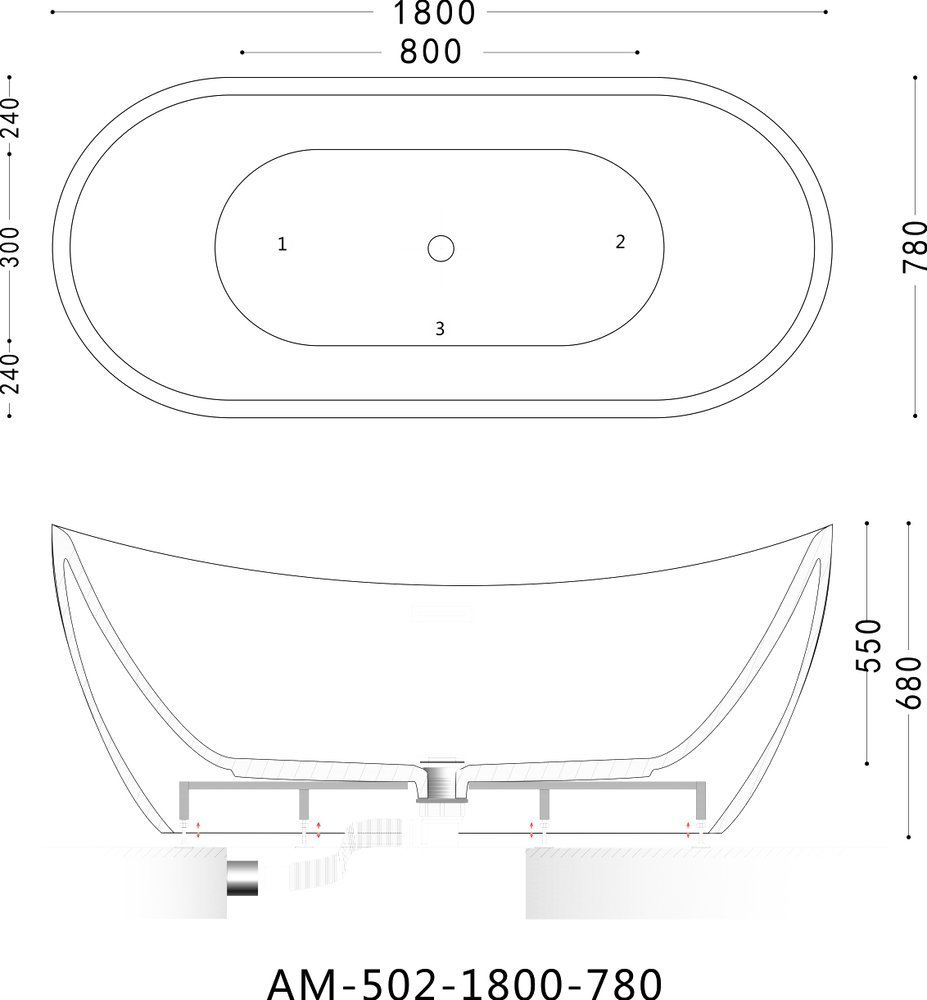 Ванна отдельностоящая Art&Max 180x78 см AM-502-1800-780, слив-перелив, донный клапан, гидрозатвор и каркас в комплекте, цвет белый.
