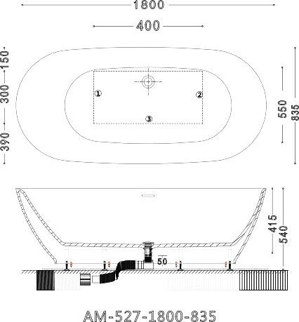 Ванна отдельностоящая Art&Max 180x83 см AM-527-1800-835, слив-перелив, донный клапан полуавтомат, гидрозатвор и каркас в комплекте, цвет белый.