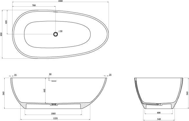 Ванна отдельностоящая Azario Clovis 169x85 см CLO17085S из искусственного камня, донный клапан в комплекте, цвет - белый матовый.