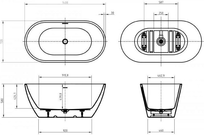 Характеристики ванна BelBagno (BB701-1400-720-K)