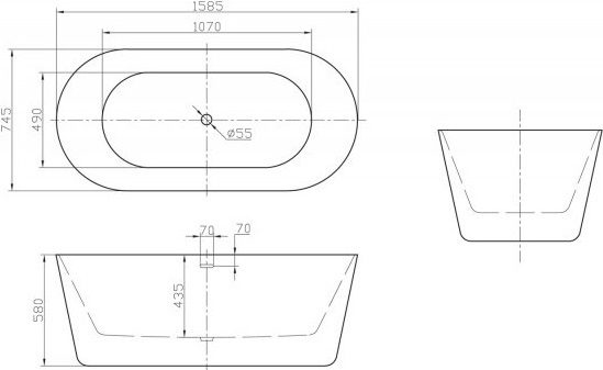 Ванна отдельностоящая BelBagno BB306-1585, размер: 1585х745х580 мм, цвет белый