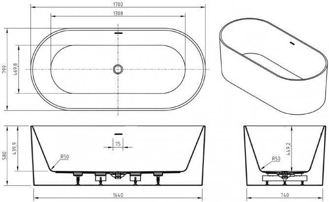 Ванна отдельностоящая BelBagno 170x80 см BB705-1700-800