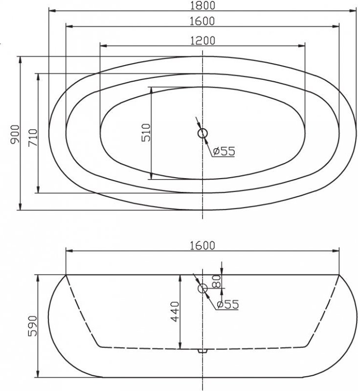 Ванна отдельностоящая BelBagno BB18, размер: 1800х900х590 мм, овальная акриловая ванна. В комплекте декоративная накладка на отверстие перелива в цвете хром.