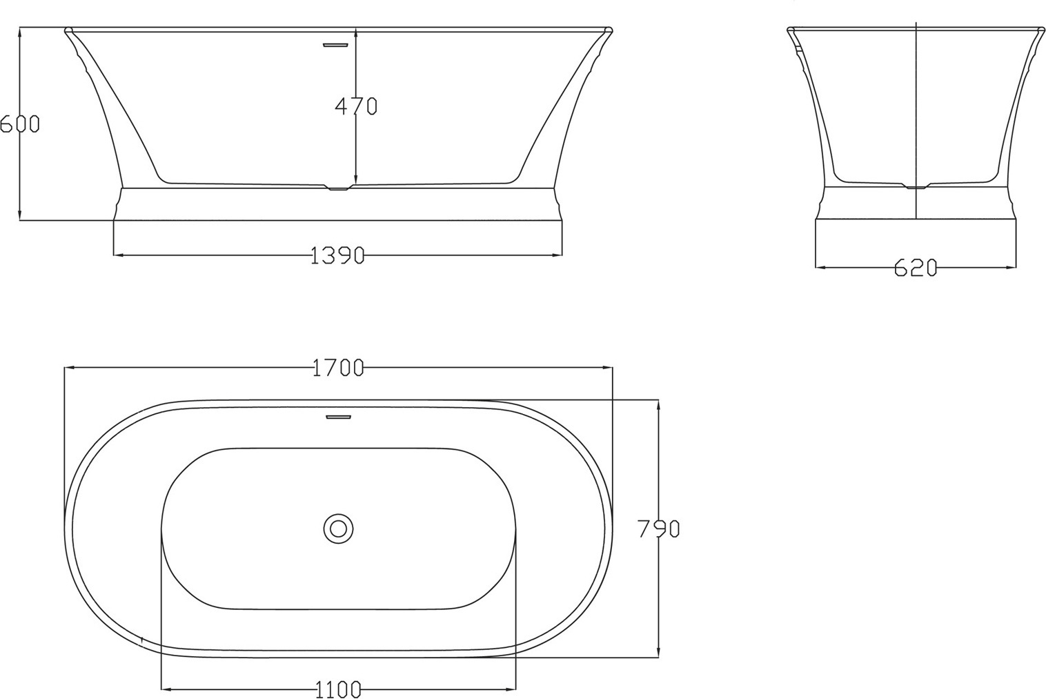 Ванна отдельностоящая BelBagno BB402-1700-790, размер: 1700х790х600 мм, в комплекте со сливом-переливом цвета хром.