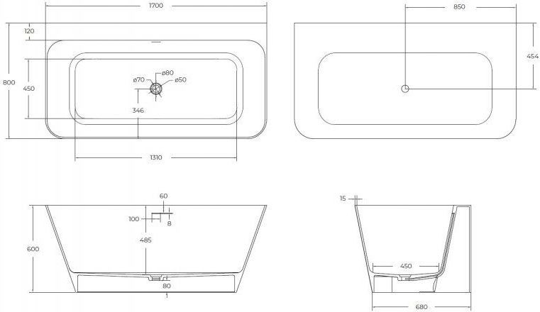 Характеристики ванна Cezares (CZR-LINER-170-80-60-SSB)