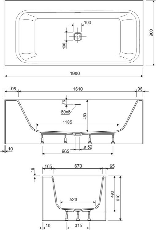 Описание ванна Cezares TITAN-VARIO-190-90-CNT