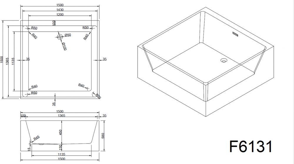 Ванна отдельностоящая Frank F6131, размер 1500x1500x580 мм, в комплекте со сливом-переливом, цвет белый.