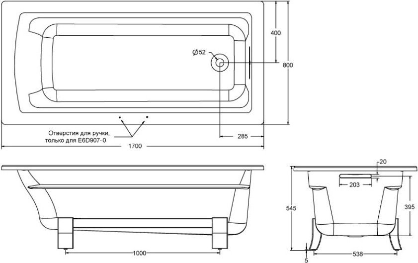 Ванна отдельностоящая Jacob Delafon Archer 170x80 см E6D907-0 с ножками, отверстием для поручня и антискользящим покрытием. Подголовник и поручень приобретаются отдельно.