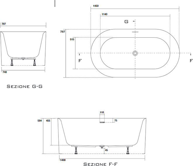 Ванна отдельностоящая Kerasan Nolita 145х80 см 535001