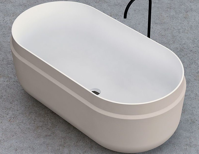Ванна отдельностоящая Kolpa-San Boul FS 165x85 см на каркасе со сливом-переливом, цвет - белый/бежевый.