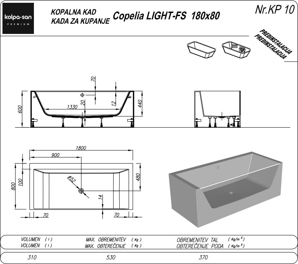 Ванна отдельностоящая Kolpa-San Copelia Light FS 180x80 см