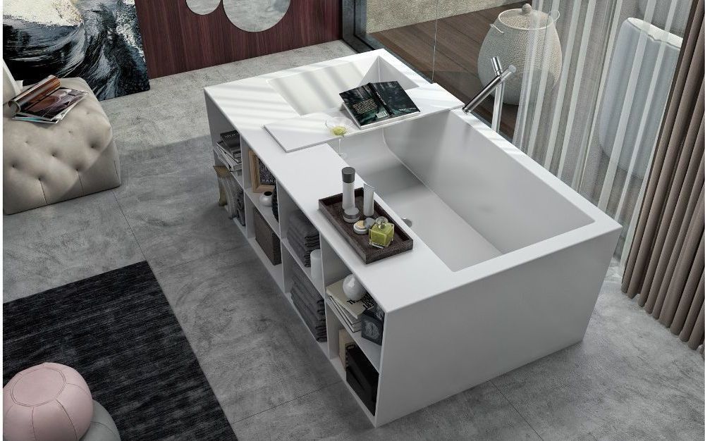Ванна отдельностоящая Kolpa-San Copelia Lux FS 180x100 см на каркасе со сливом-переливом и полочкой, цвет - белый.