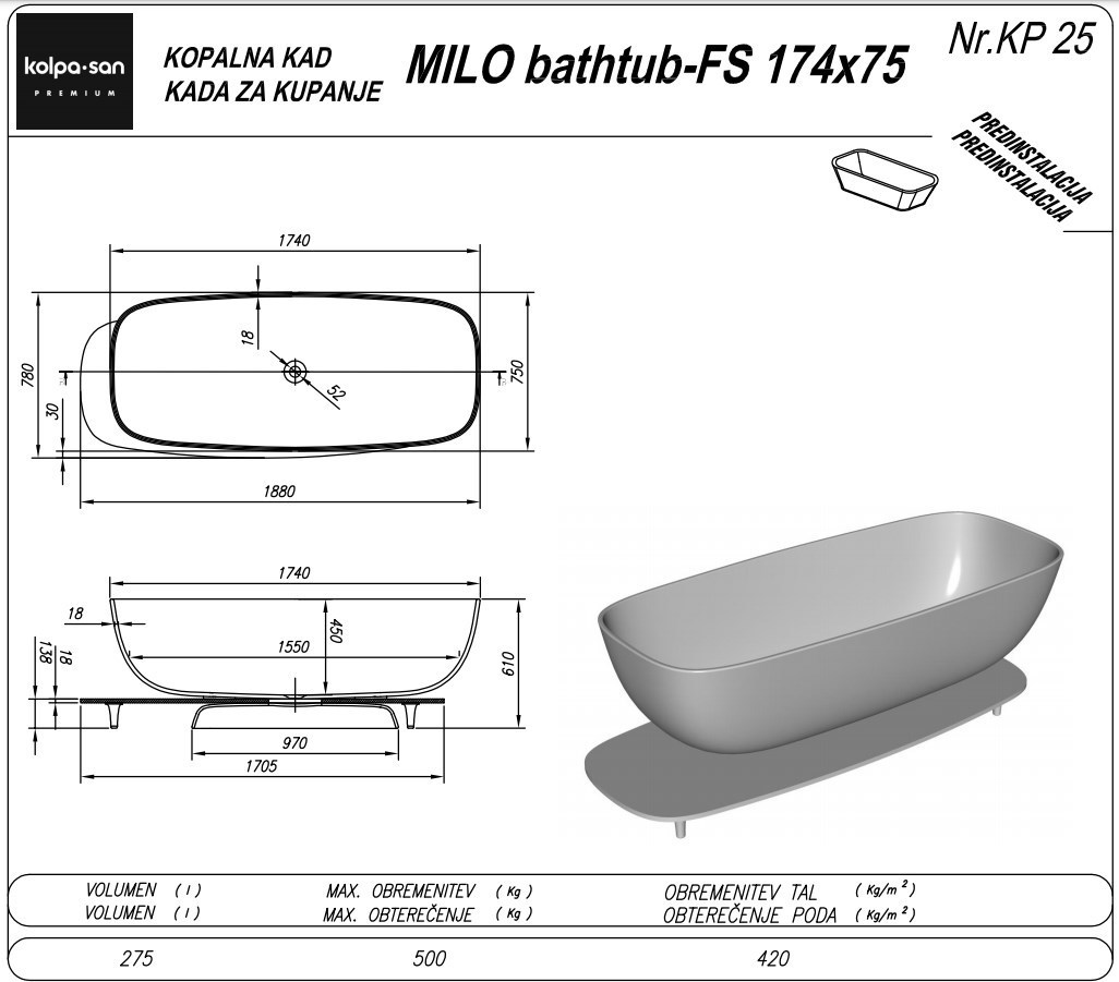 Характеристики ванна Kolpa-San (Milo_3)
