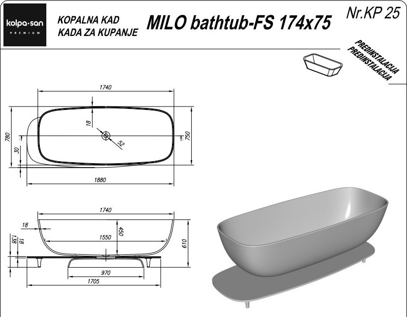 Характеристики ванна Kolpa-San (Milo)