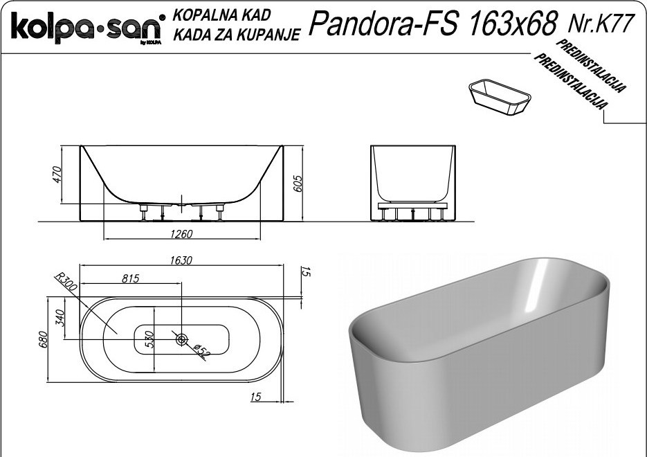 Ванна отдельностоящая Kolpa-San Pandora FS 163x68 см
