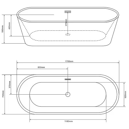 - Габариты 1700х750х580 мм обеспечивают оптимальное пространство для комфортного погружения и расслабления. Ширина 750 мм позволяет удобно расположиться, а глубина 580 мм гарантирует полное погружение и максимальное удовольствие от водной процедуры.