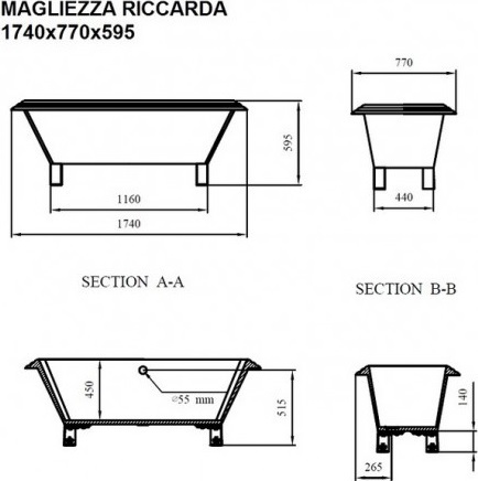 Ванна отдельностоящая Magliezza Riccarda CR 174x77 см (ножки хром)