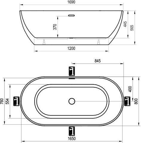 Ванна отдельностоящая Ravak Freedom O с сифоном(чёрный слив), размер 1690х800 мм. Цвет белый.